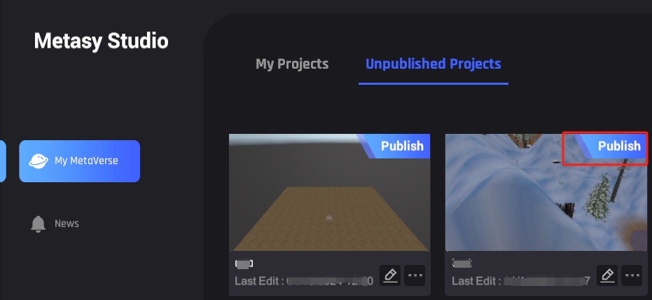 After completing the information, click 'Publish' to release your work to 'My Projects'.