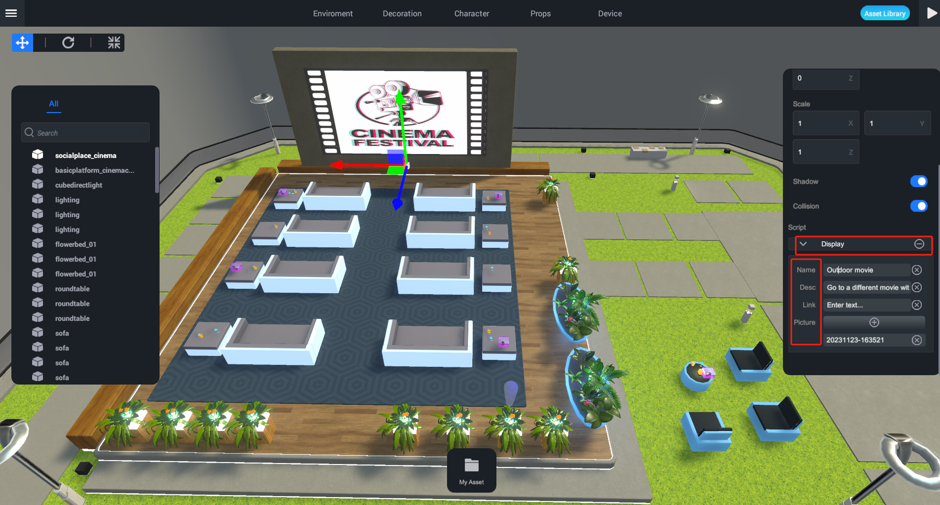 Using "Outdoor Movies" scene as an example: