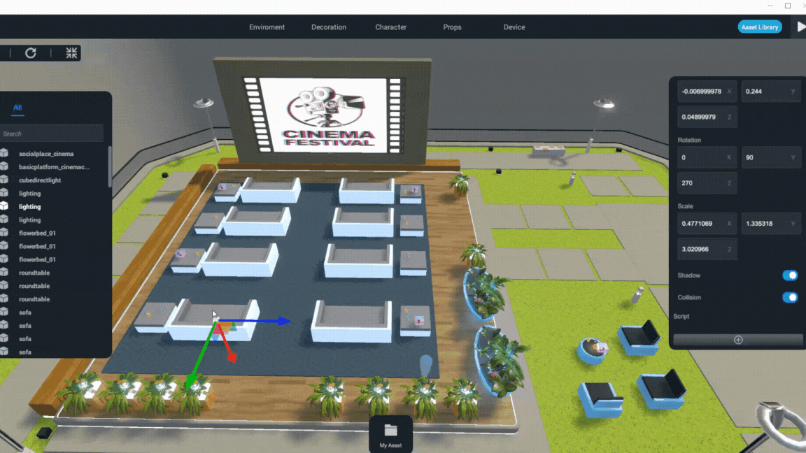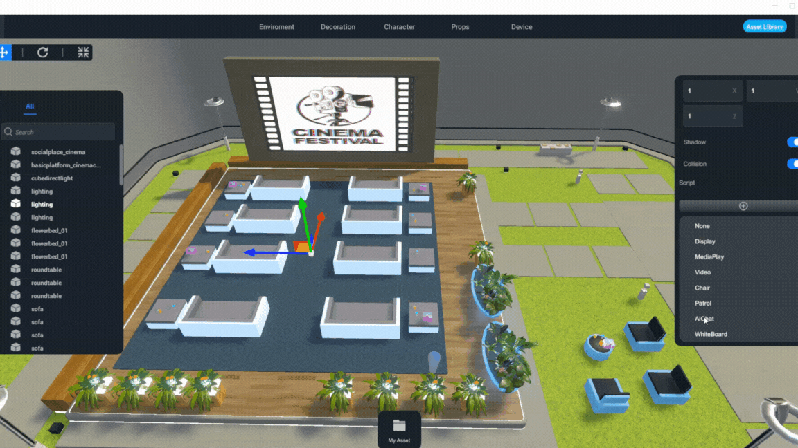 Select the object you want to edit, go to the properties panel, > "Script", click "+" to add a script, and select "Chair". The script includes two parameters: