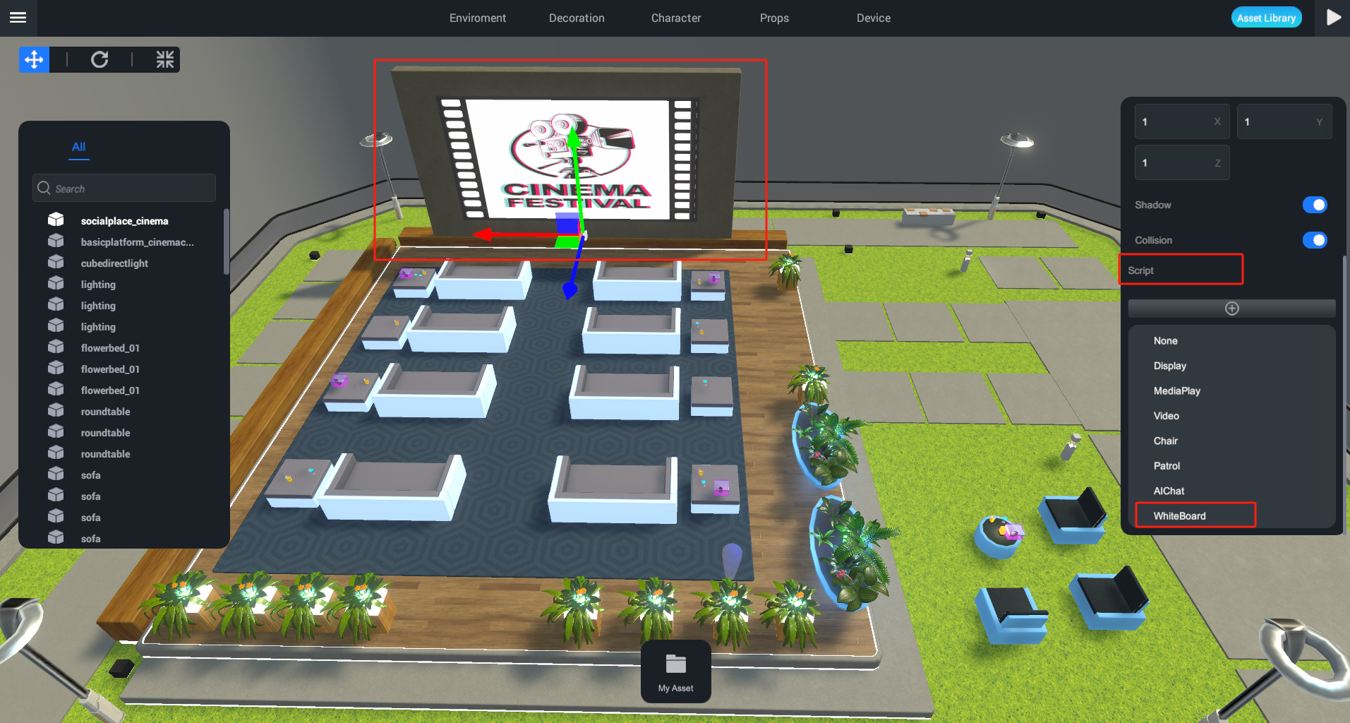 Locate the whiteboard in the Editor and add it to the scene.