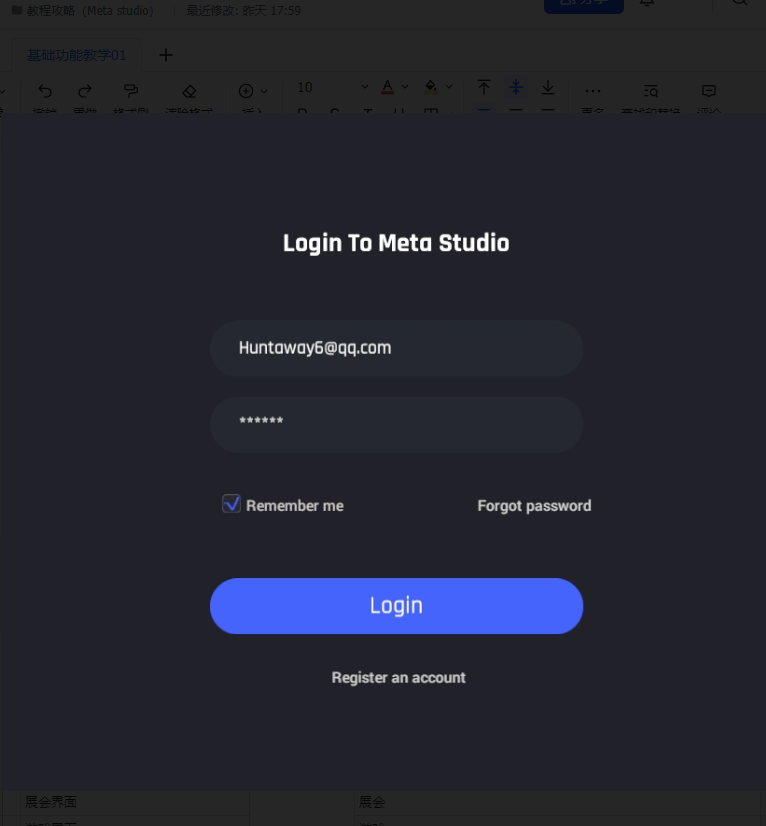 Log in to Studio with your Metasy account. If you don't have an account, you can create one on metasy.online or directly in Studio. When creating an account, follow the prompts to protect your account security.